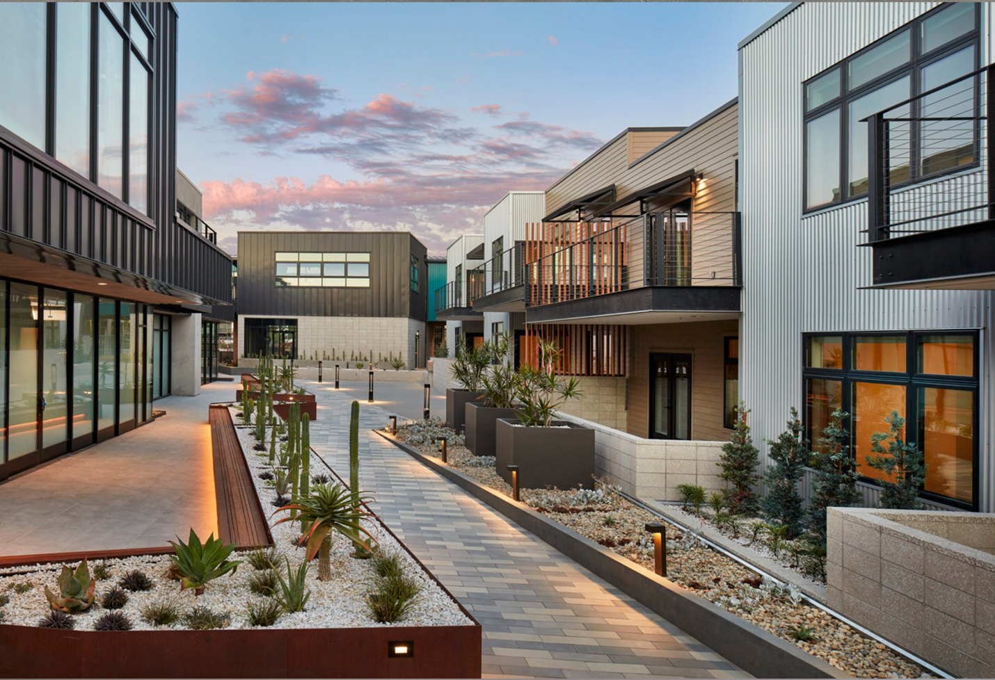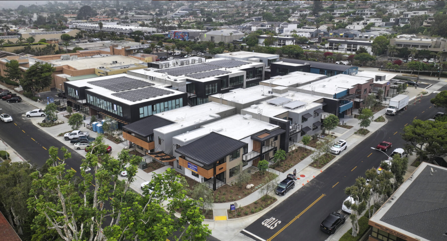 Each building within The Sandbox, Solana Beach boasts its own unique style, creating an eclectic architectural tapestry that mirrors the natural diversity of the surrounding environment. This design strategy also serves to emphasize individuality while maintaining cohesion through shared biophilic elements such as green spaces, natural light, and outdoor connectivity.